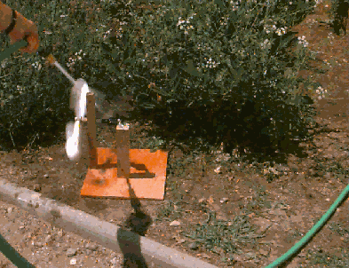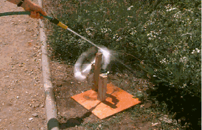 Pour un bon déroulement, faites couler le jet d'eau du robinet sur les cuillères. La roue tournera toute seule et entraînera la dynamo. Celle-ci produira de l'électricité qui pourra alors aller dans la diode et l'allumer. On a bien produit de l'électricité à partir de l'eau.